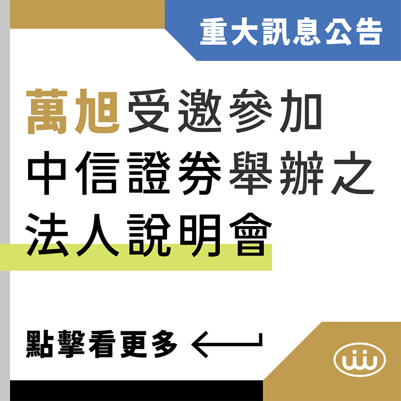 【最新訊息】萬旭 2024/10/14 受邀參加中信證券舉辦之法人說明會